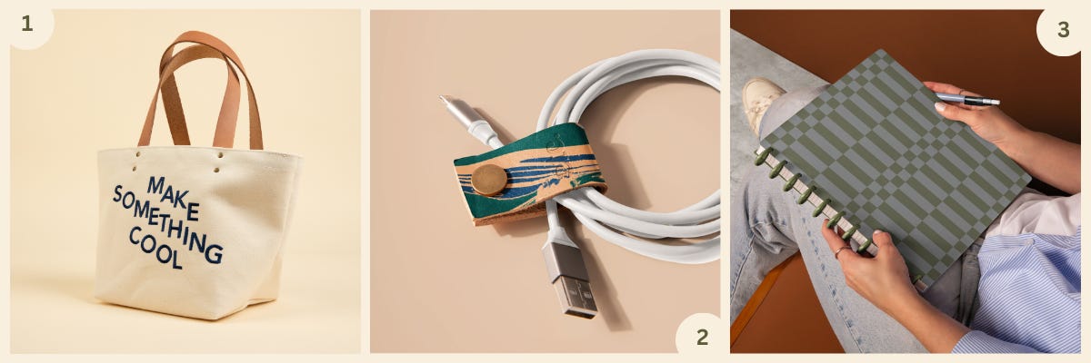 2. Leather: Our new leather collection features both debossed and marbled leather finish options! Hand-crafted from genuine cowhide, these journals, coasters, keychains, and more are going to elevate your brand.