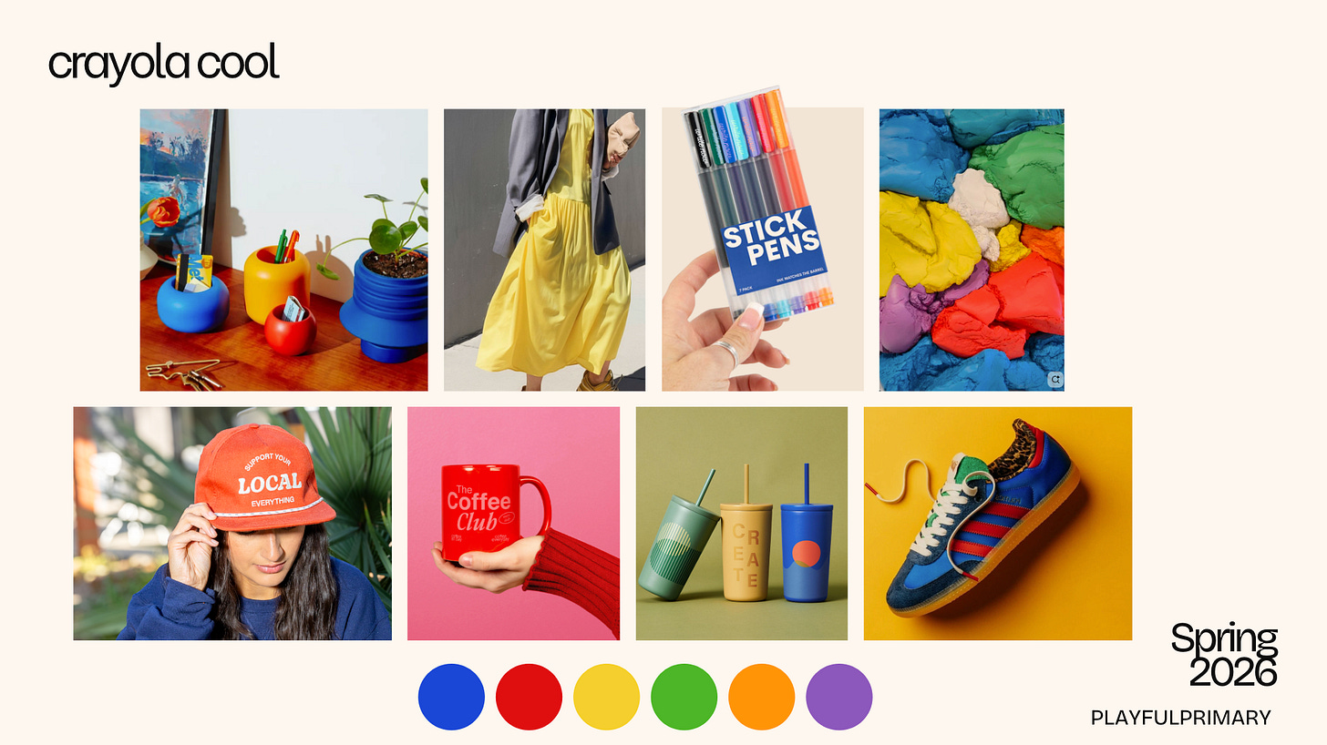 After seasons of browns and quiet neutrals, this trend feels like opening a brand-new box of crayons, just with better taste and fewer questionable color choices. Be a kid again.